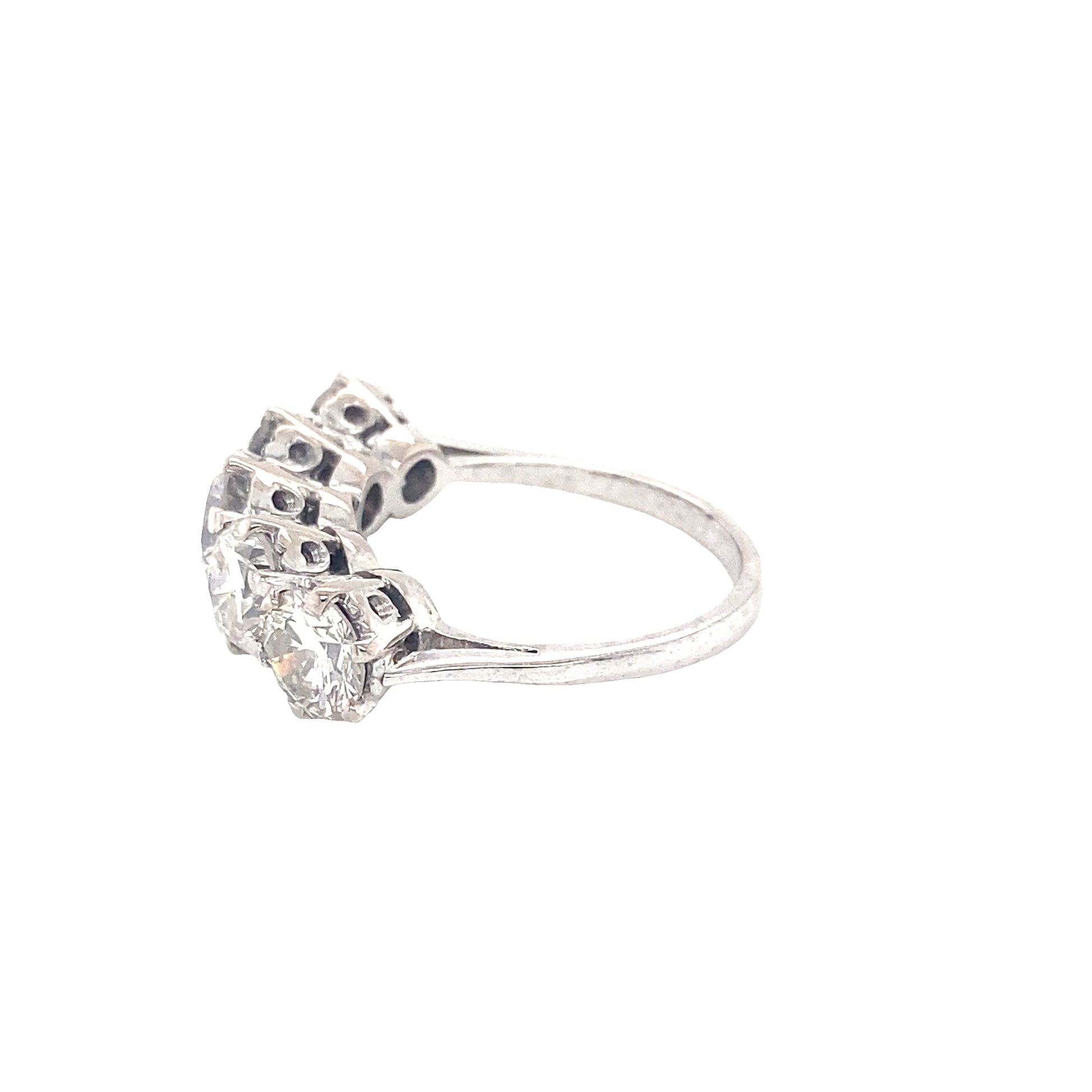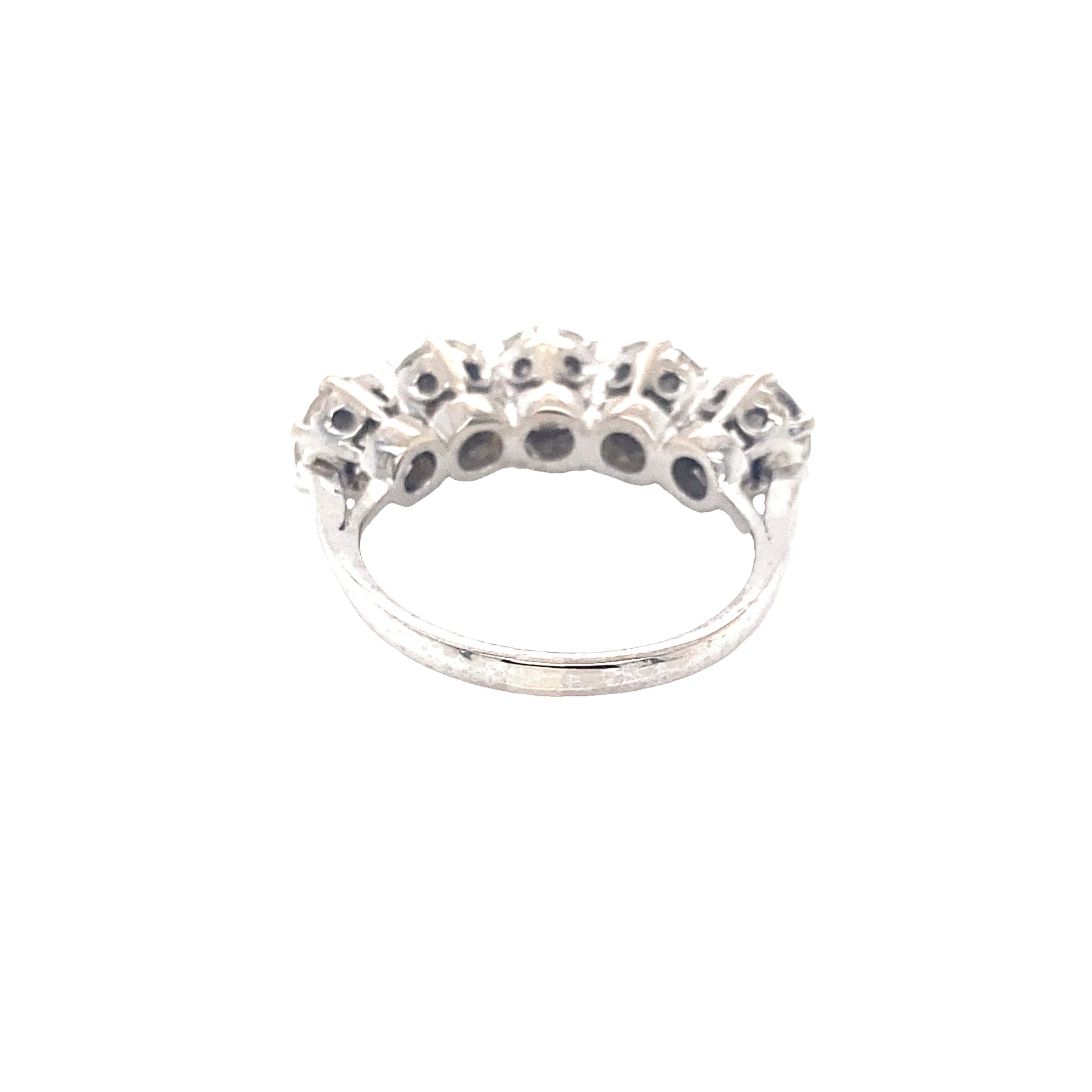 Experience timeless elegance with this suspected 18ct White Gold ring featuring five stunning Round Brilliant Cut Diamonds. With a total diamond weight of approximately 3.25cts, each stone is secured in a six claw setting, maximizing sparkle and sophistication.