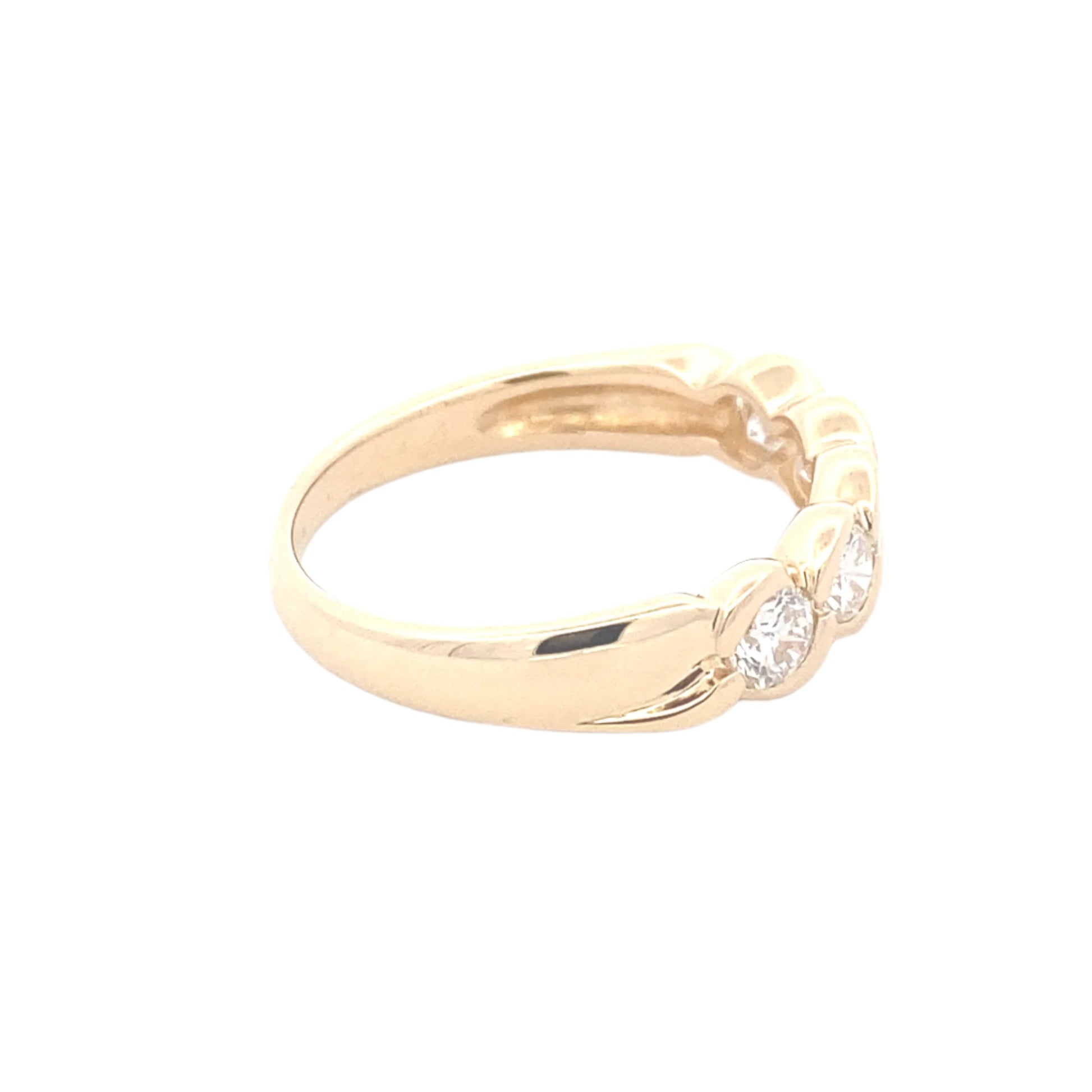 Made with 18ct Yellow Gold and featuring approximately 0.75cts of sparkling diamonds, this ring is the perfect symbol of eternal love and commitment. Its twist style setting adds a unique and elegant touch to any outfit. Treat yourself or a loved one to this beautiful piece today!