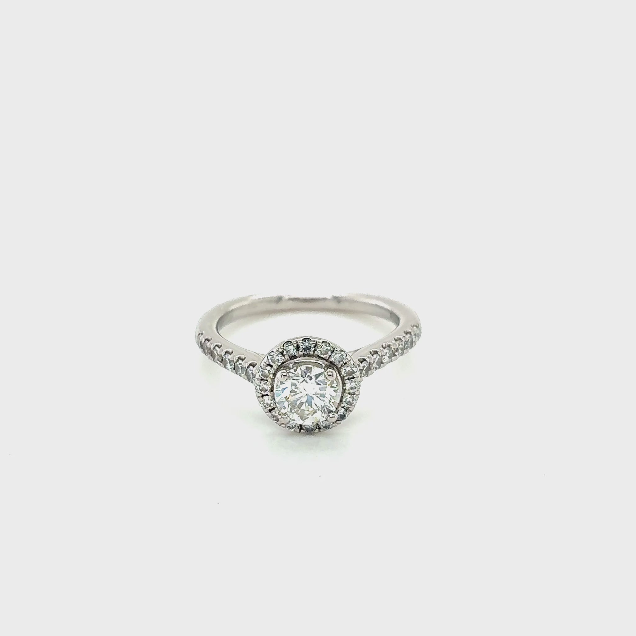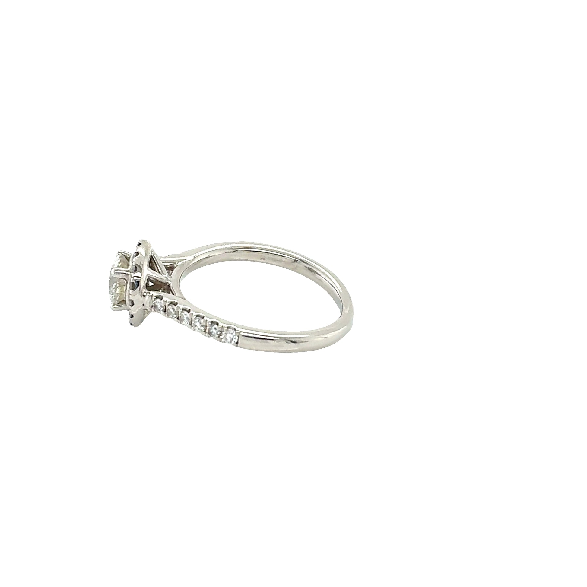Round Brilliant Cut Diamond Halo Ring with Diamond set shoulders